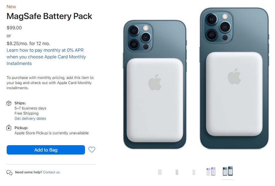 ฟังดูแล้วการพก Power Bank แบบไร้สาย น่าจะเข้าท่ากว่า เช่น Anker PowerCore Magnetic 5K Wireless Power Bank ความจุ 5,000 mAh ที่ 3.7V ชาร์จ 12 Pro Max ได้ประมาณ 75% (จากแบตหมดเกลี่้ยงจนเต็ม) แน่นอนว่า Apple จะซื้อไม่ได้ในราคา่นี้ เพราะ Anker ราคาพันต้นๆ ($40) ในขณะที่ Apple MagSafe Battery Pack ราคาประมาณ 3,300 บาท ($99)