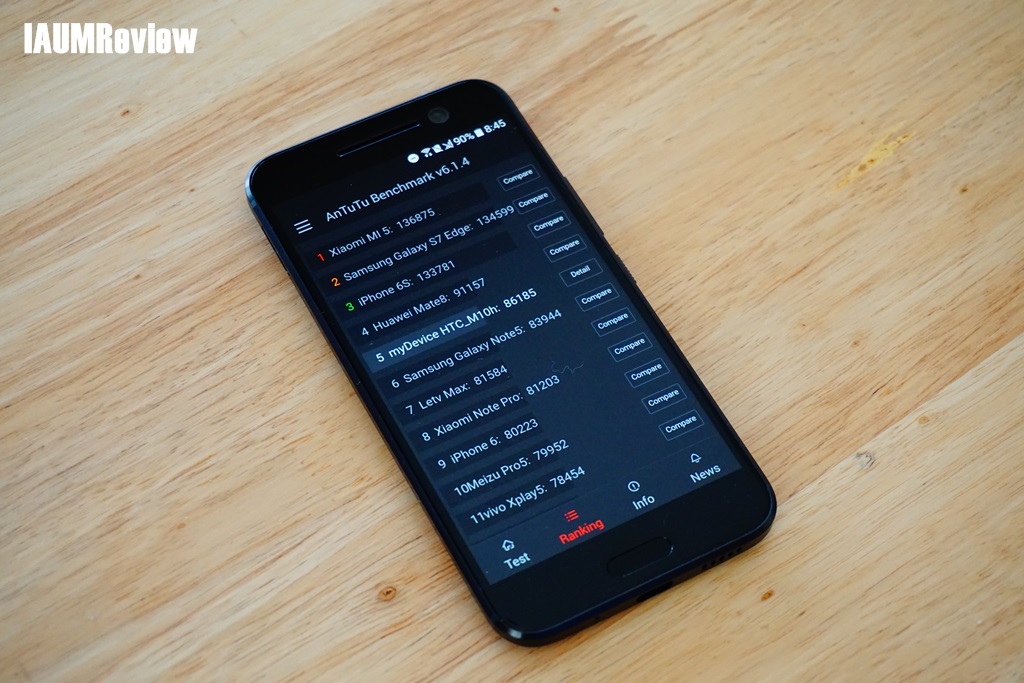 เรือธงสมัยนี้ แทบไม่ต้องห่วงเรื่อง Performance เลยนะคะ เพราะสามารถเล่นทุกอย่างได้อย่างลื่นไหล ไม่ว่าจะเกมเล็กเกมใหญ่ ยิ่งถ้าเราไม่ได้ใช้อะไรแรงๆ เล่นแอพ เล่นโซเชียลทั่วๆ ไป แค่ไม่ค้างก็ดีใจแล้ว จริงมั้ยคะ 555 เจ้า HTC 10 อัดเต็มมาทั้งบาง ไม่ว่าจะเป็น CPU Qualcomm Snapdragon 820, Quad Core, 64 bit ให้แรมมา 4GB ตัวที่อุ้มรีวิว ความจุ 32 GB นะคะ รันด้วย Android 6.0 เล่นเกมนานๆ ก็ร้อนใช้ได้เลยค่ะ โลหะยิ่งระบายอากาศโหดๆอยู่
