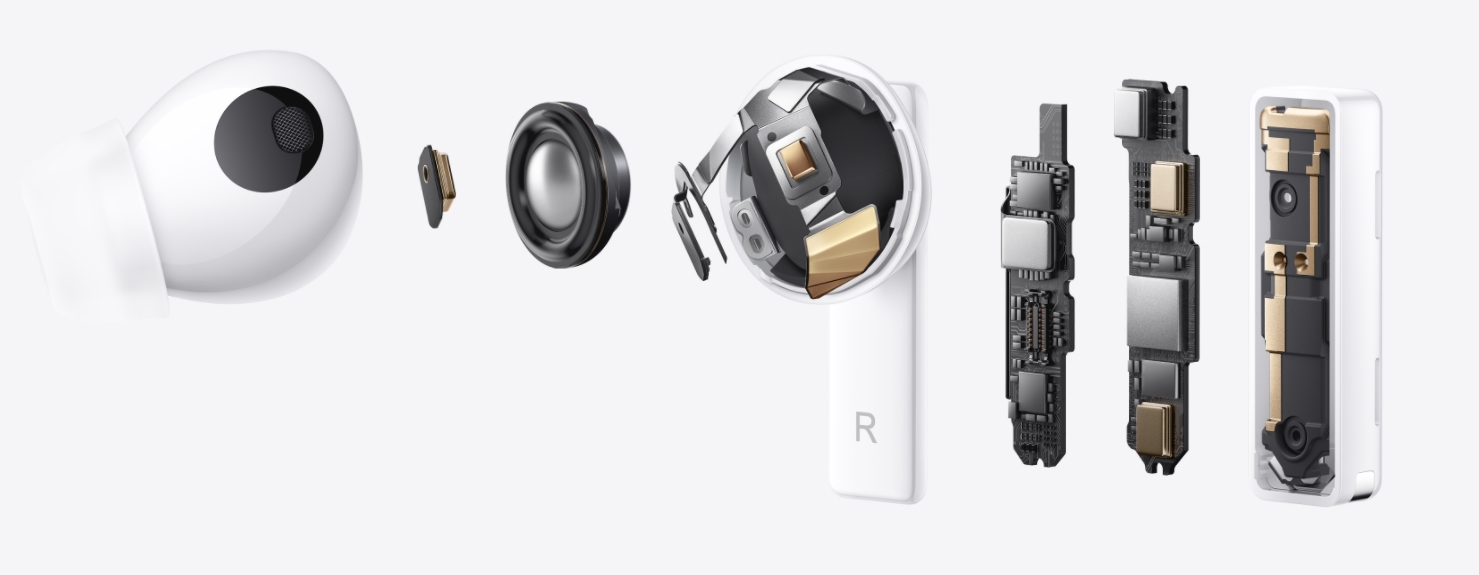 ภายในตัวหูฟัง FreeBuds Pro จะมี Dynamic Driver ขนาด 11 มม. ให้คุณภาพเสียงที่ดีเยี่ยม เบสดังกระหึ่ม พร้อมทั้ง Bone Voice Sensor ที่จะช่วยเพิ่มความชัดของเสียงขณะคุยโทรศัพท์ และมีไมโครโฟนถึง 3 ตัวเพื่อการเก็บเสียงพูดที่ชัดเจน นอกจากนี้ก็ยังใช้ชิปที่รองรับ Bluetooth 5.2 ซึ่งมีค่า Latency ในการเชื่อมต่อเพียงแค่ 180ms เท่านั้น