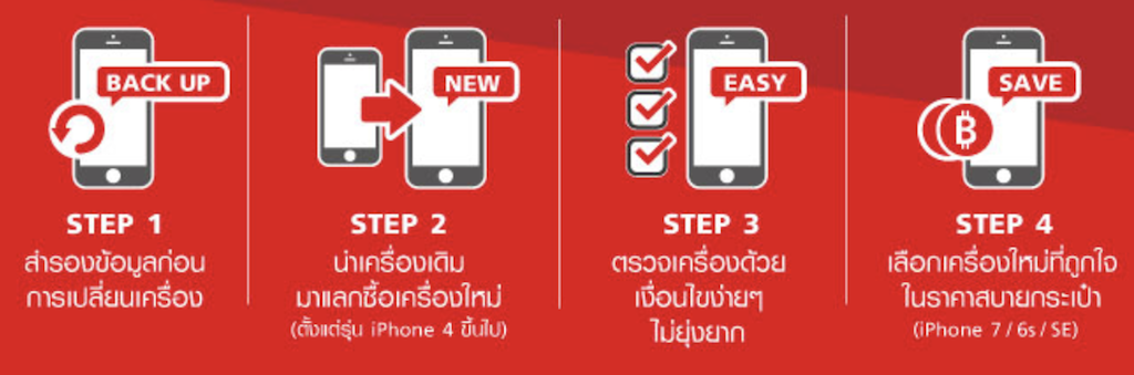 เป็นอีกสิ่งนึงที่ในต่างประเทศมีมาสักพักแล้วนะคะ กับการนำเครื่องเก่า ไปเพิ่มเงินแล้วแลกเป็นเครื่องใหม่ โดยตั้งแต่วันที่ 8 พ.ย. เป็นต้นไป จะอัพเกรดเป็น iPhone 8 หรือ iPhone 8 Plus ได้แล้วค่ะ โดยมีวิธีการดังนี้ ใครที่สนใจ ดูได้เพิ่มเติมที่ http://truemoveh.truecorp.co.th/news/detail/643