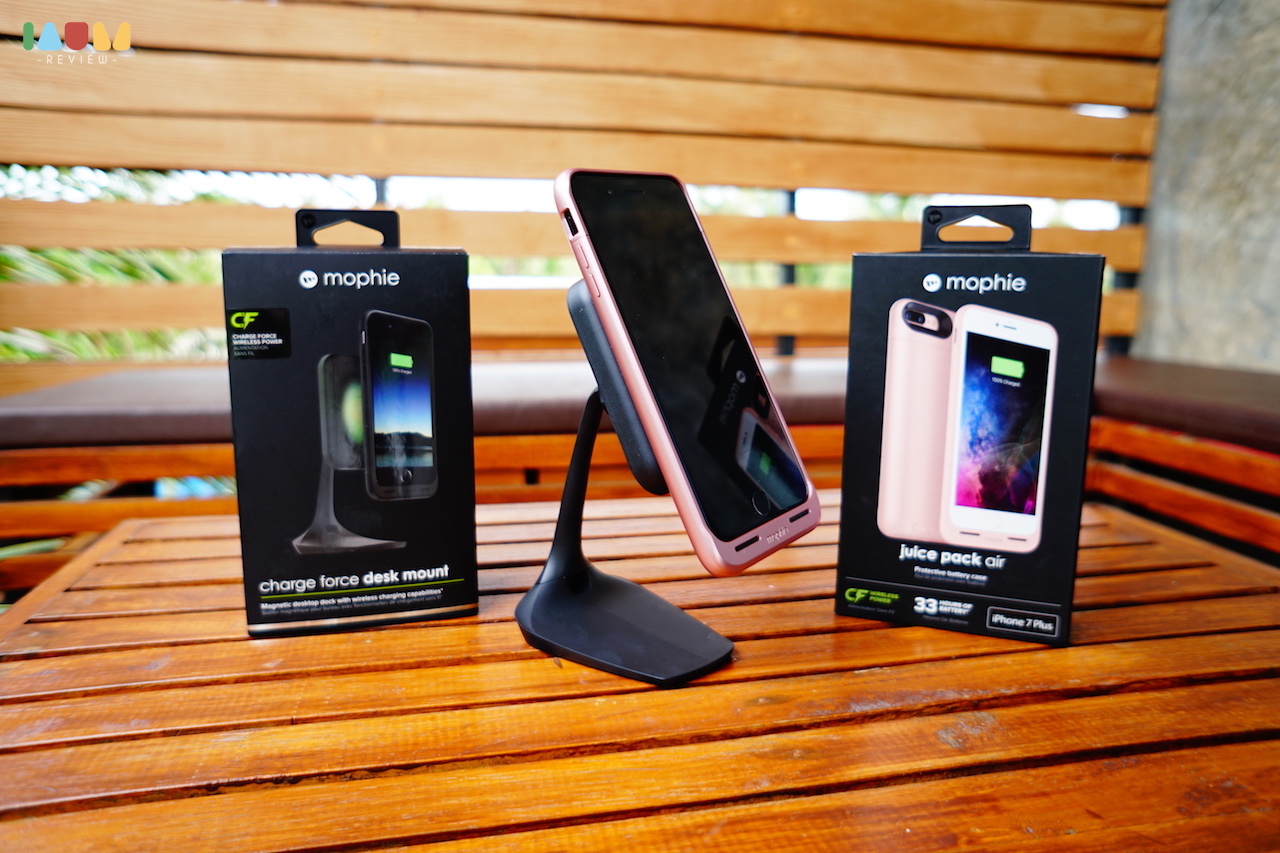 แต่เท่านี้อาจจะยังธรรมดาไปค่ะ สิ่งที่ทำให้เจ้า juice pack air มีความเก๋ไก๋มากยิ่งขึ้น คือการใช้งานคู่กับ charge force desk mount อุปกรณ์ที่จะทำหน้าที่เป็น แท่นชาร์จไร้สาย (เหมือนค่ายอื่นๆ 555) โดยมีจุดเด่นดังนี้