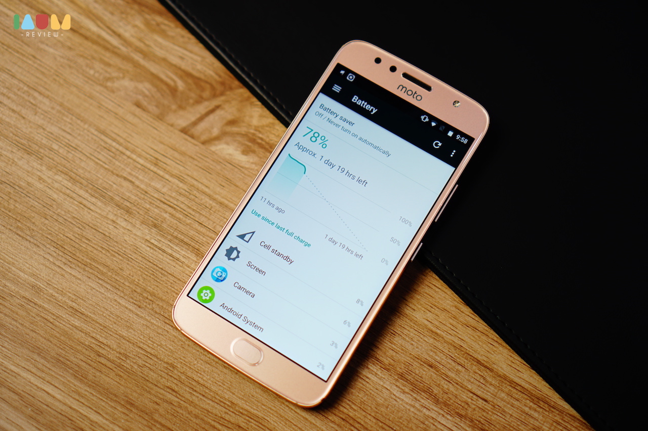 สำหรับเรื่องแบตเตอรี่ เท่ากับ G5 Plus เลยค่ะ คือ 3,000 mAh และมี TurboPower ชาร์จเพียง 15 นาที ก็ใช้ได้ยาวๆ ถ้าถามว่าแบตให้มาเท่านี้พอมั้ย ก็ต้องบอกว่าอยู่ได้เป็นวันๆ นี่อุ้มเองใช้เป็นเครื่องสำรอง ก็อยู่มาหลายวันแล้วค่ะ 555