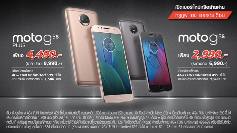 แต่ถ้าจะเอาให้ถูกจริงๆ คงต้องไปเปิดเบอร์ทรูมูฟ เอชแบบรายเดือน Moto G5s Plus จะเหลือเพียง 4,490 บาท และ Moto G5s ถูกมาก เหลือเพียง 2,990 บาท  รายละเอียดตามภาพด้านล่างเลยนะคะ