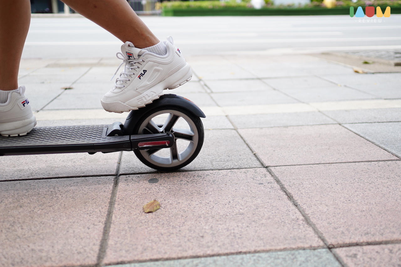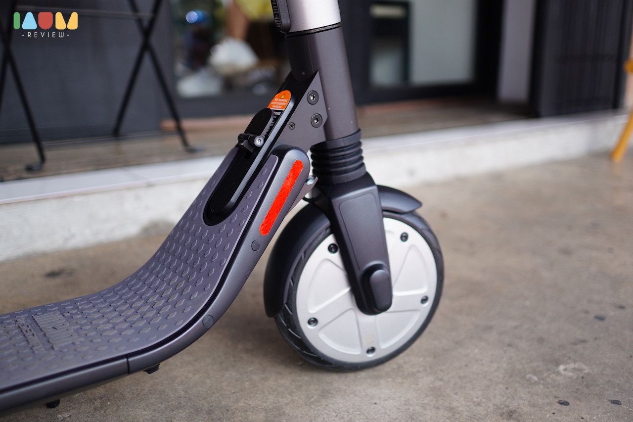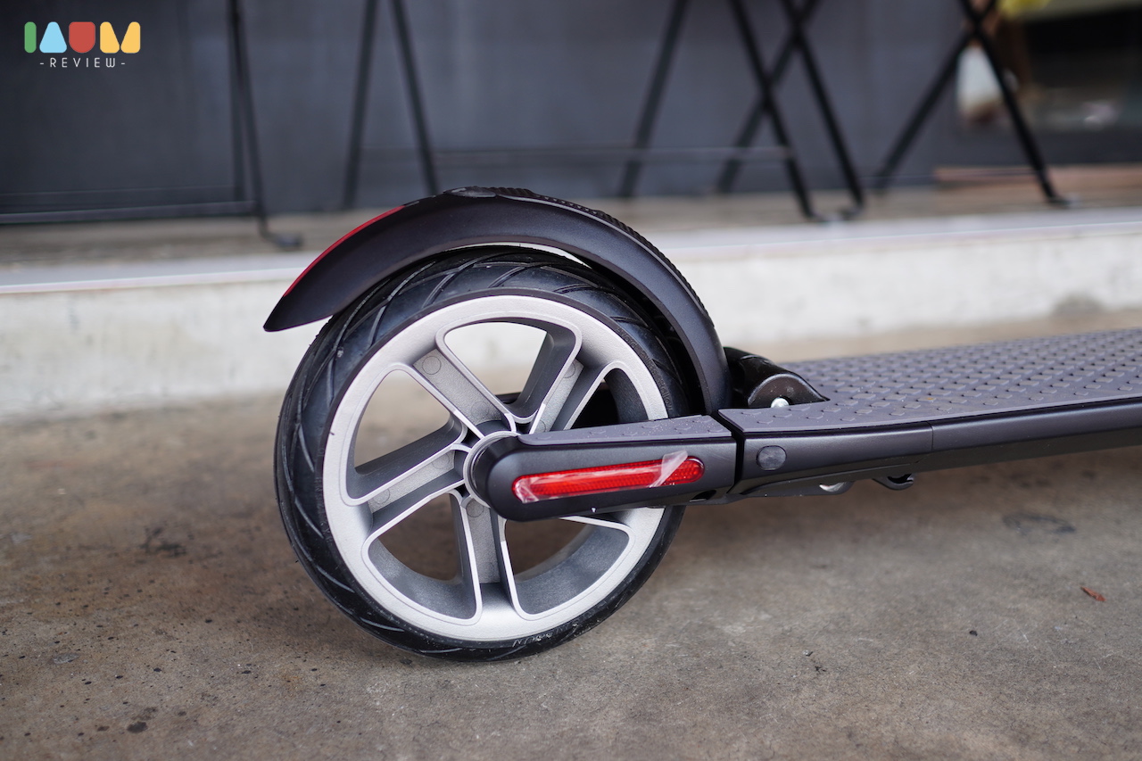 จากปัญหาเรื่องถนนขรุขระ บางที่การขี่สกู๊ตเตอร์ไฟฟ้าอาจจะไม่สะดวกนักในประเทศไทย แต่เจ้า KickScooter ตัวนี้ มากับล้อขนาดใหญ่ถึง 8 นิ้ว รวมถึงการใส่โช้คมาให้ ทั้งล้อหน้าและหลัง เมื่อเราใช้งานจริง จะรู้สึกได้เลยว่า มีความนุ่มนวลเวลาเจอหลุมเล็กๆ และทำให้เราวิ่งได้สมูธขึ้น เมื่อเจอทางที่ขรุขระ ดีขึ้นมากๆจริงๆ