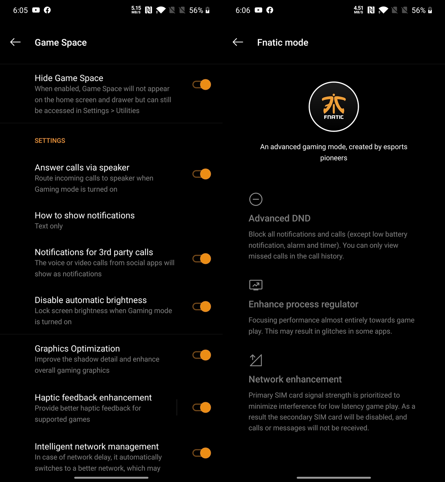 Game Space / Fnatic Mode มี 2 โหมดให้เลือก เพื่อการเล่นเกม ให้เต็มอรรถรส เช่น เปิดเสียงคุยโทรศัพท์เปิด Speaker Phone คุยตอนเล่นเกม (ถ้าต้องการรับสาย), จัดสรร Network ให้เล่นเกมลื่นที่สุด ปิด Notification การแจ้งเตือนต่างๆ ที่รบกวนสมาธิในการเล่นเกม