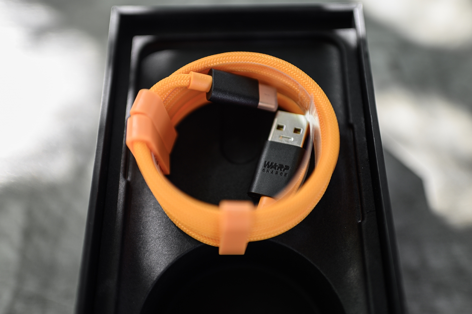 สายชาร์จ Warp Charge Type-C Cable (รองรับ USB 2.0) และ อแดปเตอร์ชาร์จไฟ Warp Charge 30T Power Adapter เป็นสีดำ – ส้ม McLaren