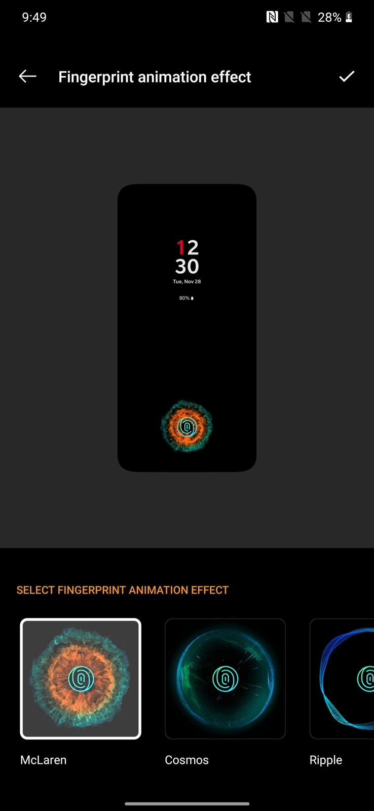 ตั้งการแสดงเอ็ฟเฟ็กต์ สแกนนิ้วบนหน้าจอ ธีม McLaren สีส้มสวย