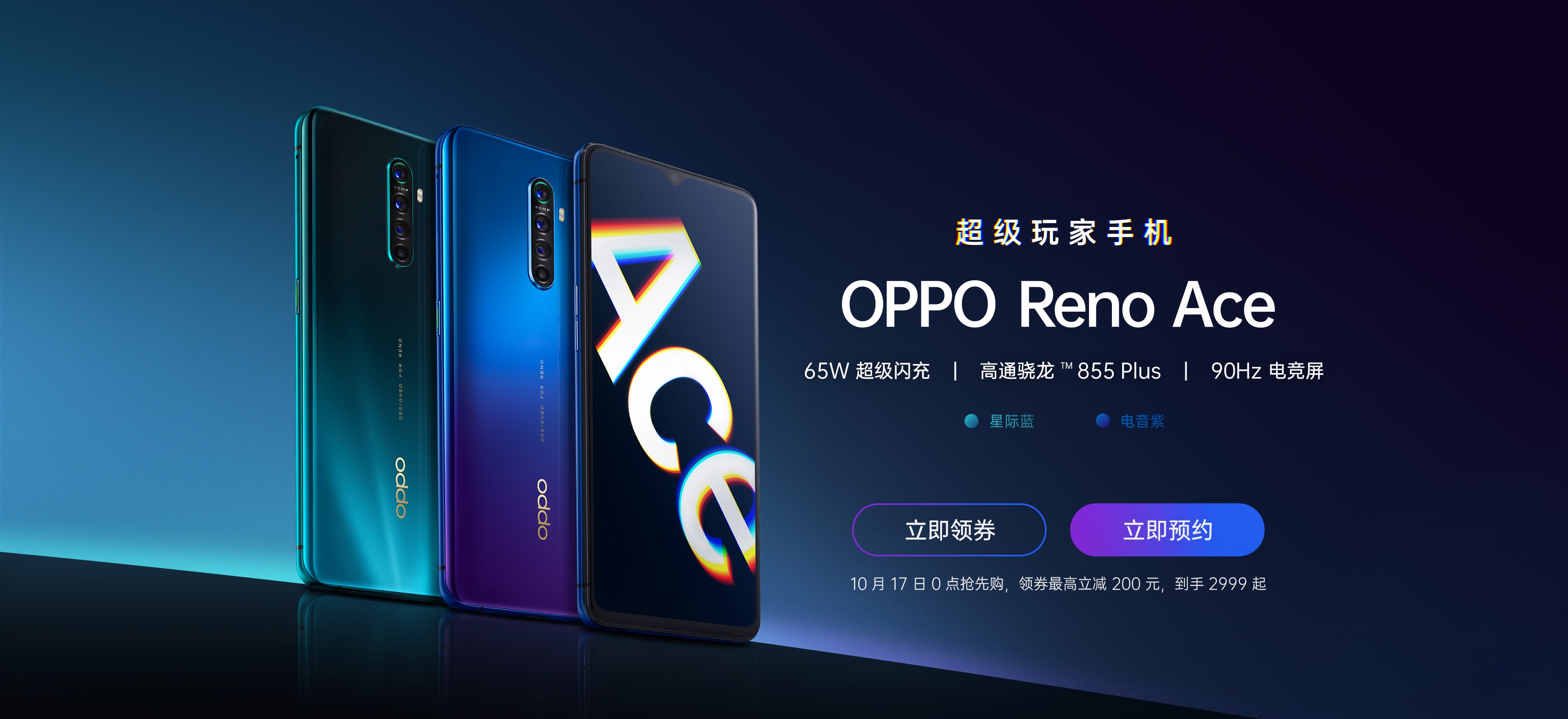 มาแล้วมือถือตัวท็อปรุ่นใหม่ของ OPPO กับ OPPO Reno Ace ที่คราวนี้มาพร้อมจุดเด่นหลัก ๆ คือ หน้าจอรองรับการแสดงผลแบบ 90Hz เล่นเกมดี เฟรมเรตลื่นไหล ประมวลผลเร็วแรงด้วยชิป Snapdragon 855+ แบตเตอรี่ใหญ่ถึง 4000mAh แถมยังรองรับชาร์จเร็ว 65W เรียกได้ว่าเล่นนานแถมยังชาร์จเร็วอีกต่างหาก ส่วนกล้องนั้นก็จัดเต็มมาไม่แพ้กัน เพราะให้มาถึง 4 กล้องเลยทีเดียว สำหรับรายละเอียดสเปคของ OPPO Reno Ace ก็มีดังนี้