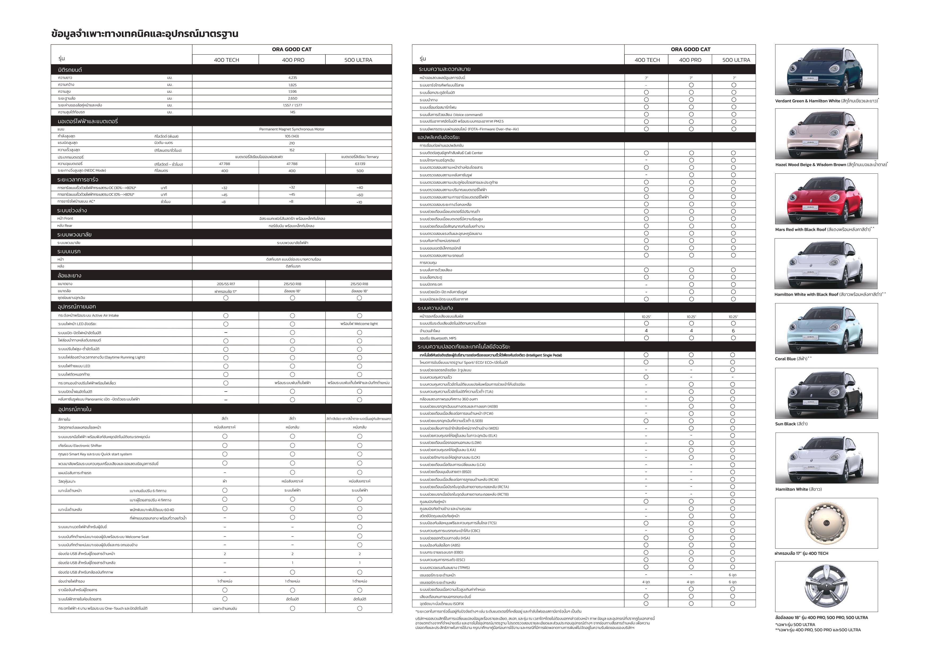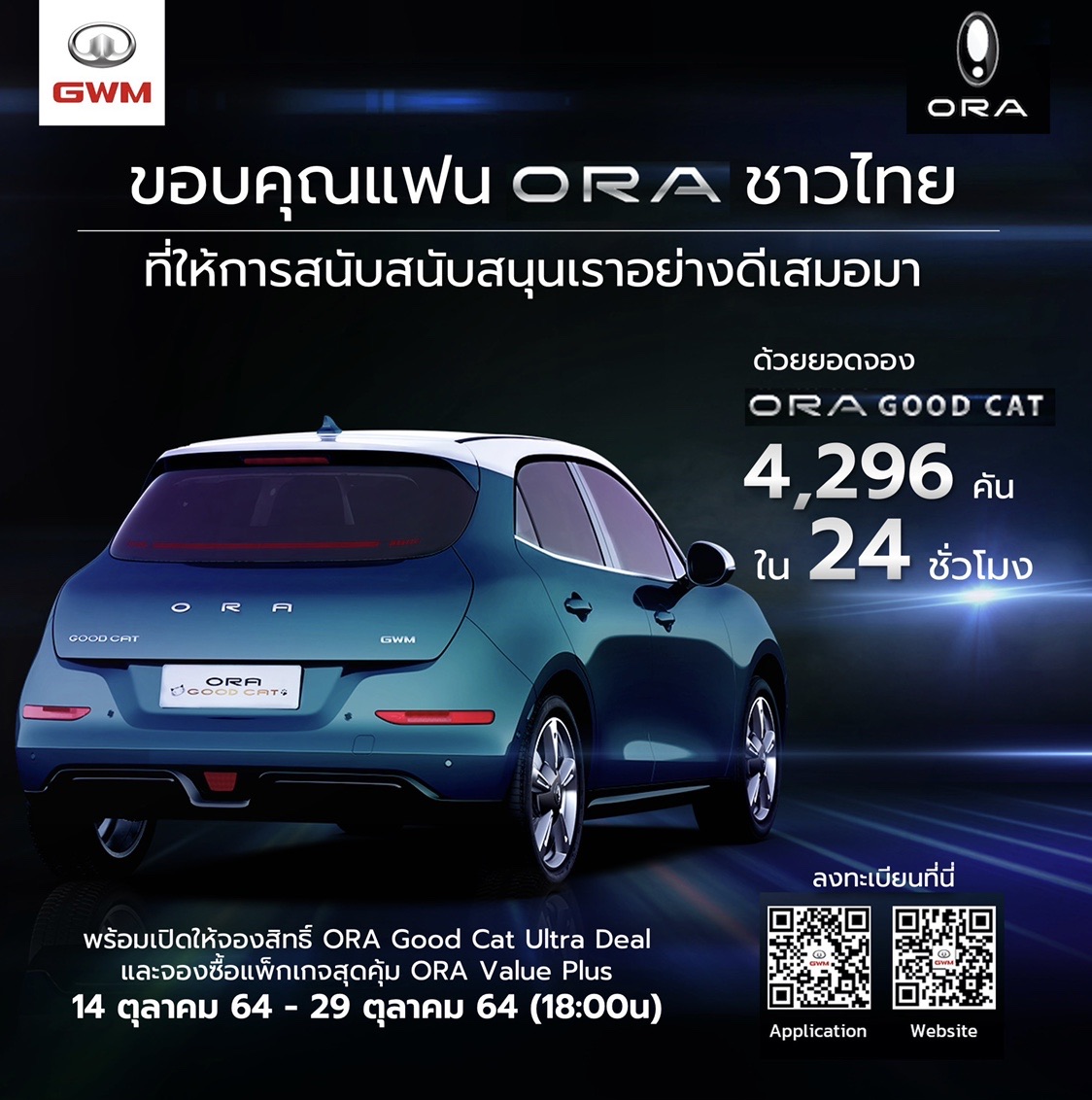 รุ่นและสีรถยนต์ ORA Good Cat เตรียมเปิดตัวอย่างเป็นทางการและเริ่มวางจำหน่ายในประเทศไทยในวันที่ 29 ตุลาคม พ.ศ. 2564 เป็นต้นไป