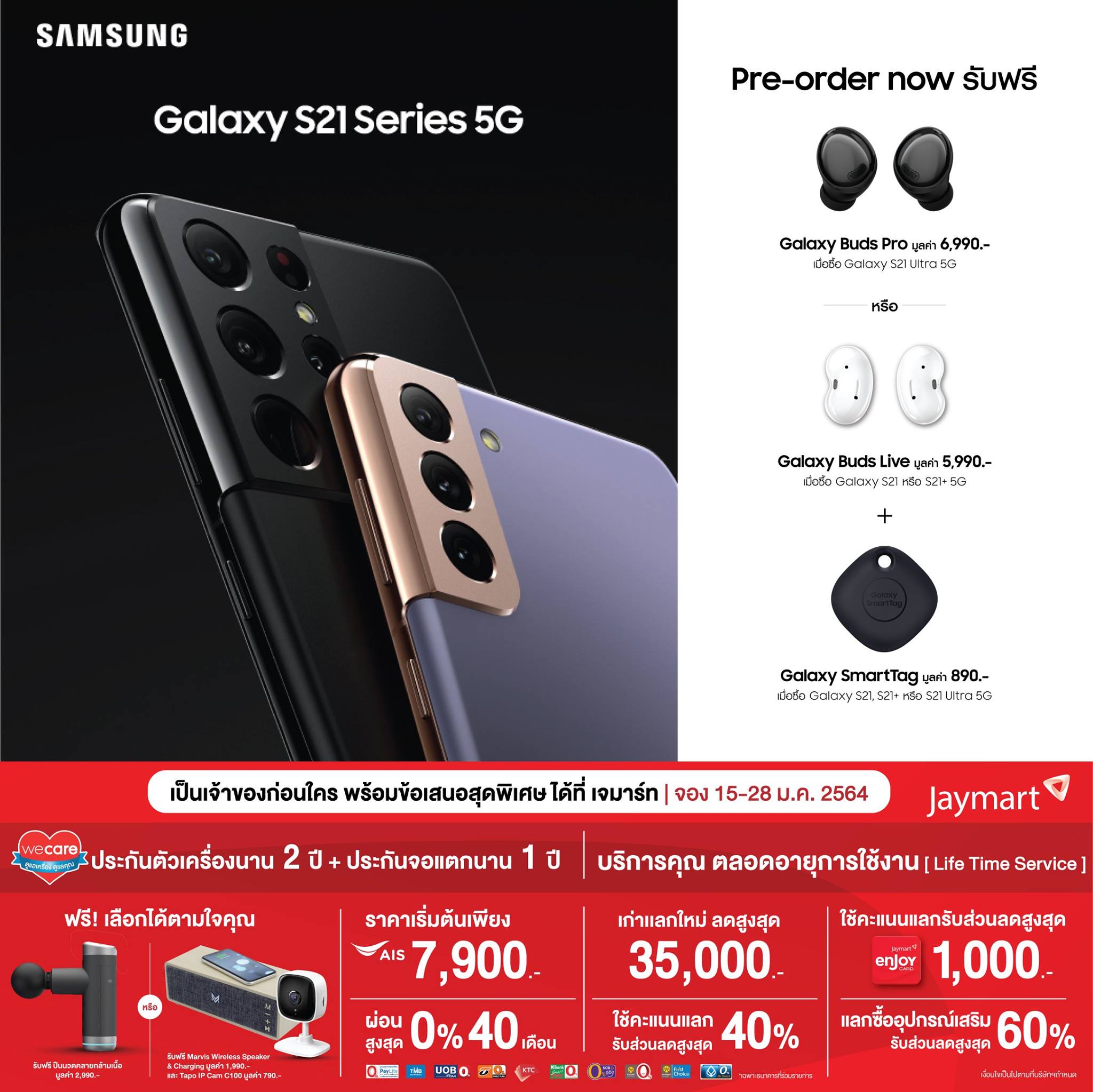 - รับฟรี Galaxy Buds Live มูลค่า 5,990 บาท เมื่อซื้อ Galaxy S21 หรือ S21+ 5G)