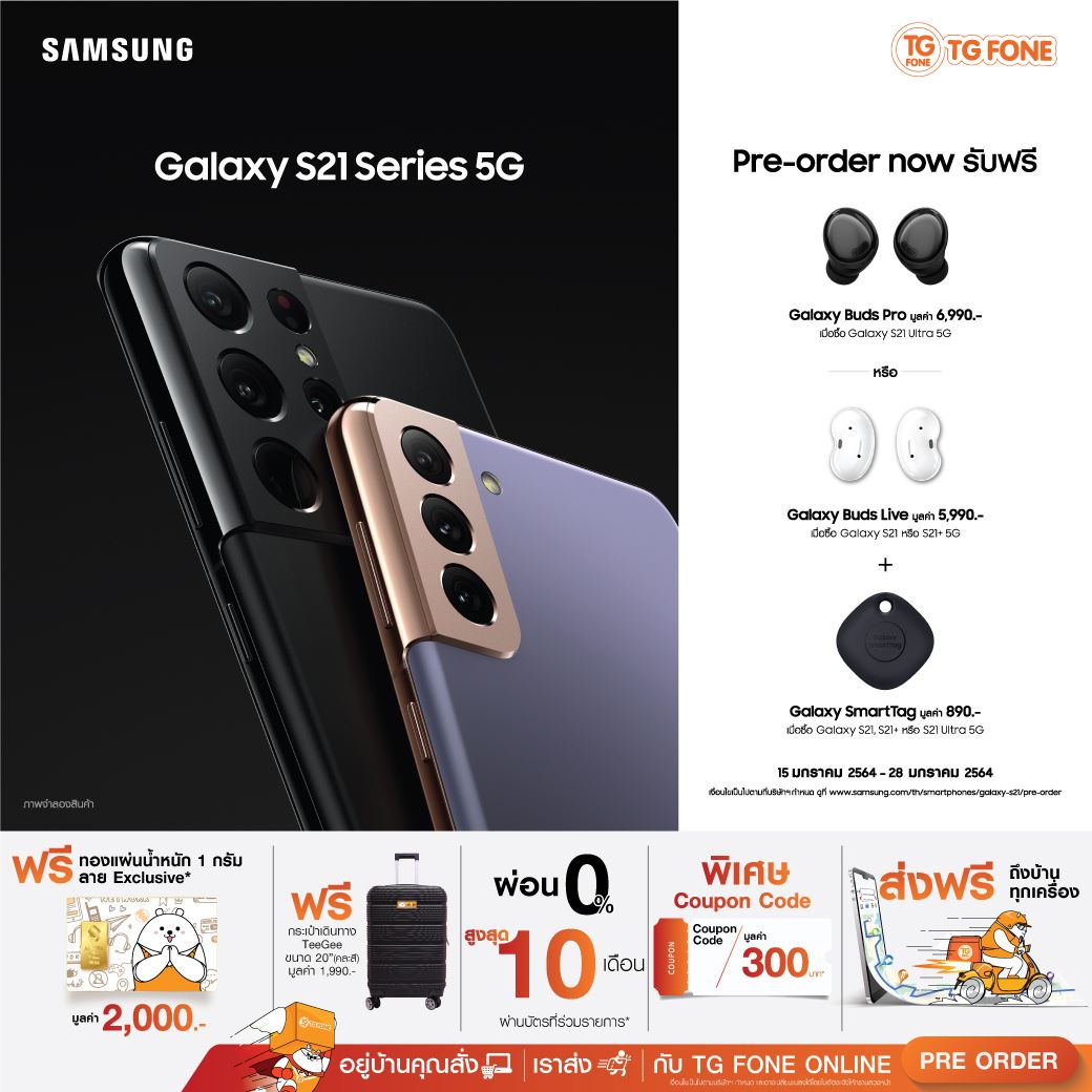 - Galaxy S21 Ultra เริ่มต้นเพียงเดือนละ 3,990 บาทจองที่ TG FONE ONLINE