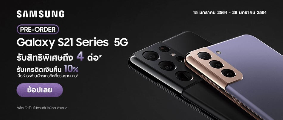 - Galaxy S21 เริ่มต้นเพียงเดือนละ 2,790 บาท
