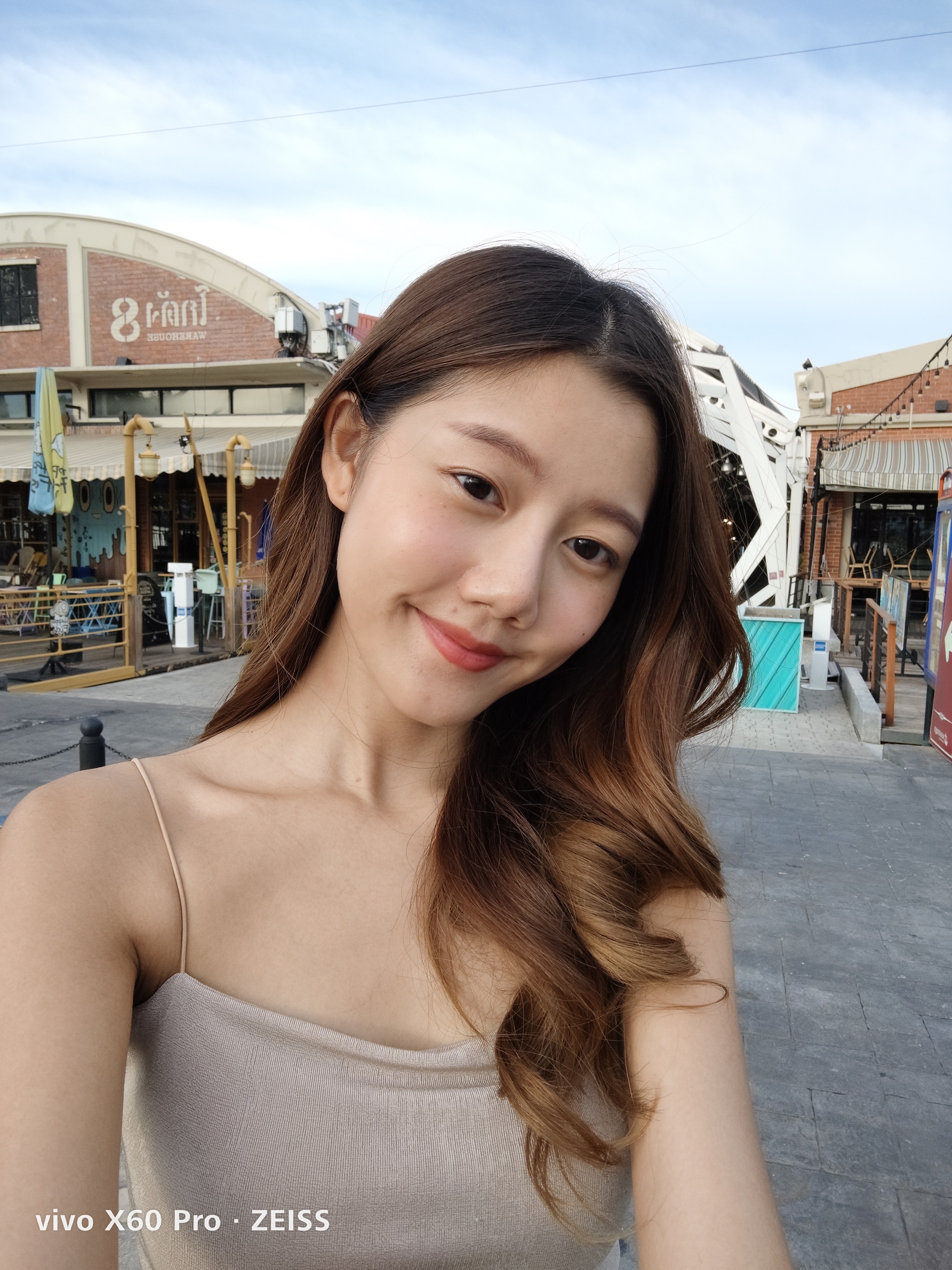 บอกเลยว่าปกติ vivo จะเก่งเรื่องกล้องหน้า แต่รุ่นนี้ กล้องหลังเก่งขึ้นเยอะมากเลย โดยเฉพาะโทนสี การจัดการสีผิว การถ่ายภาพบุคคล จัดการ Skin Tone ได้สวย จบหลังกล้องแบบไม่ต้องปรับอะไรเพิ่มเลย โดยมีเลนส์ถ่ายภาพบุคคล 13MP ทางยาวโฟกัส 50mm ระยะ Portrait ของการถ่ายบุคคล ข้อดีคือ หน้าไม่บาน ไม่ตัวยาว ขายาว