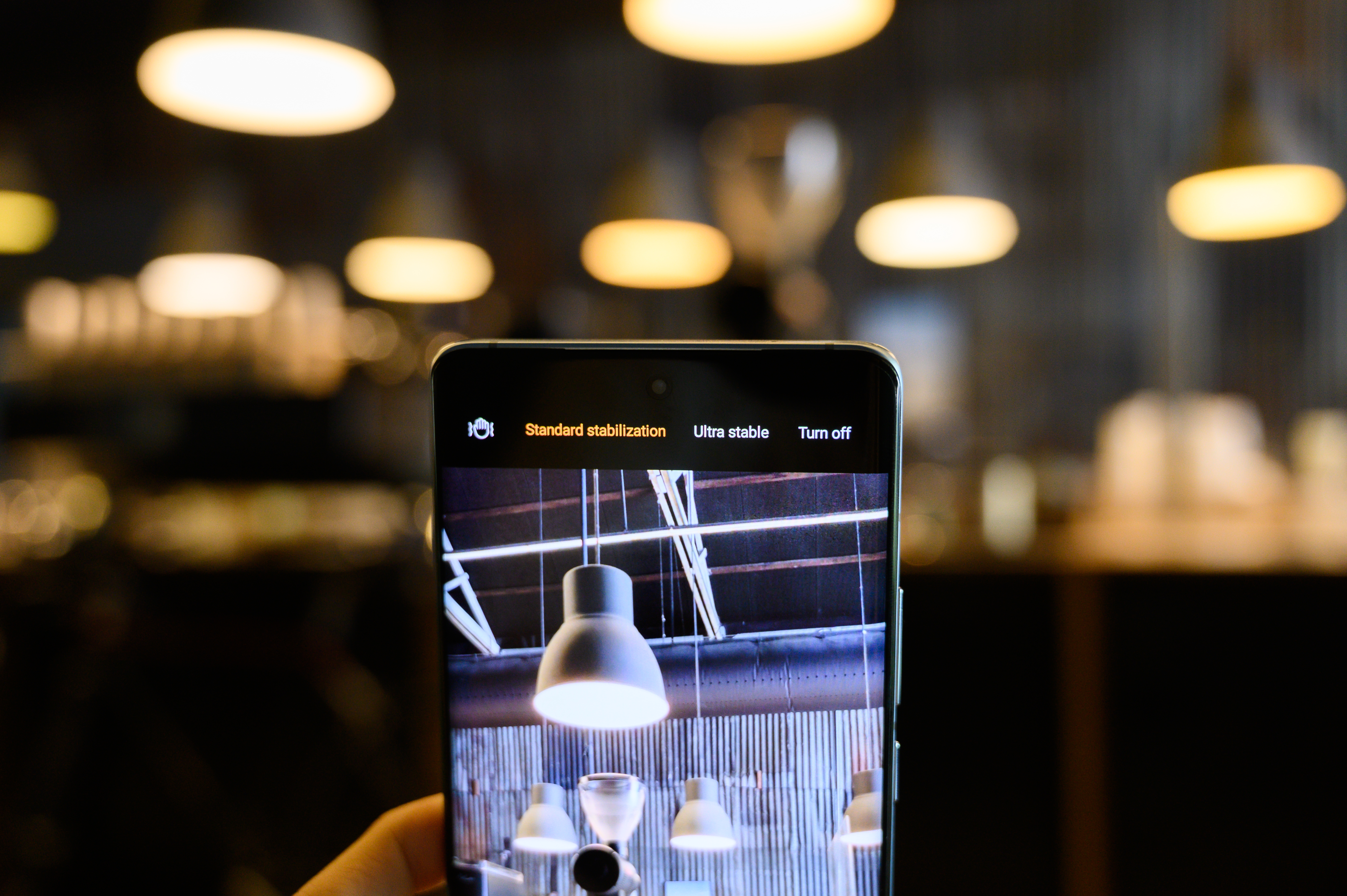 ทำงานร่วมกับเลนส์หลัก Sony IMX 598 รูรับแสง f/1.48 โดยถ่ายวีดีโอนิ่ง มี 2 โหมดคือ Standard Stabilization เลือกได้หลายเลนส์ หลายระยะ และ Ultra Stable