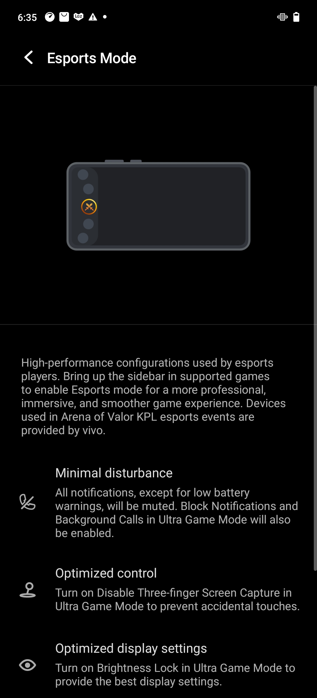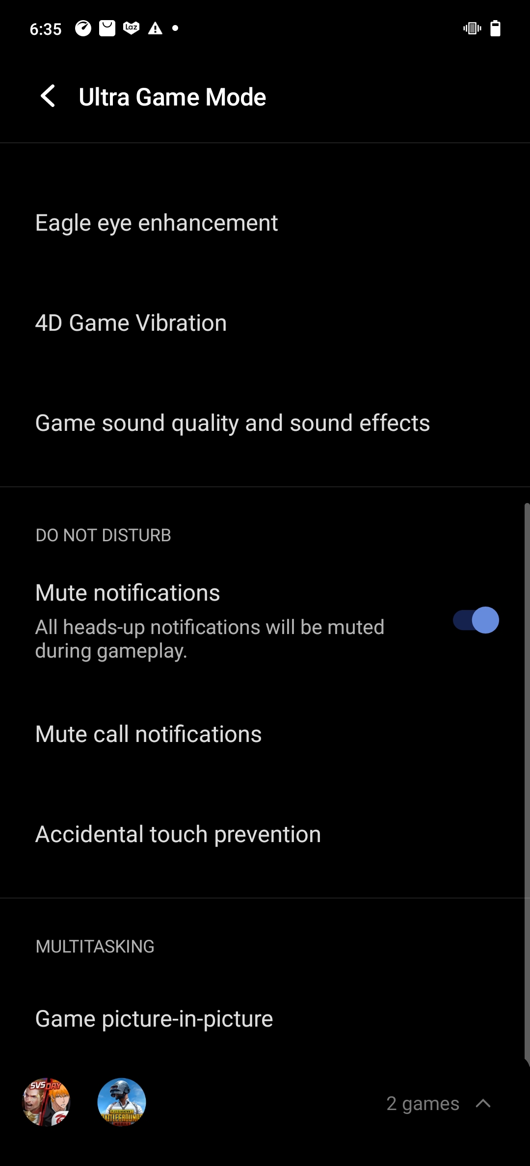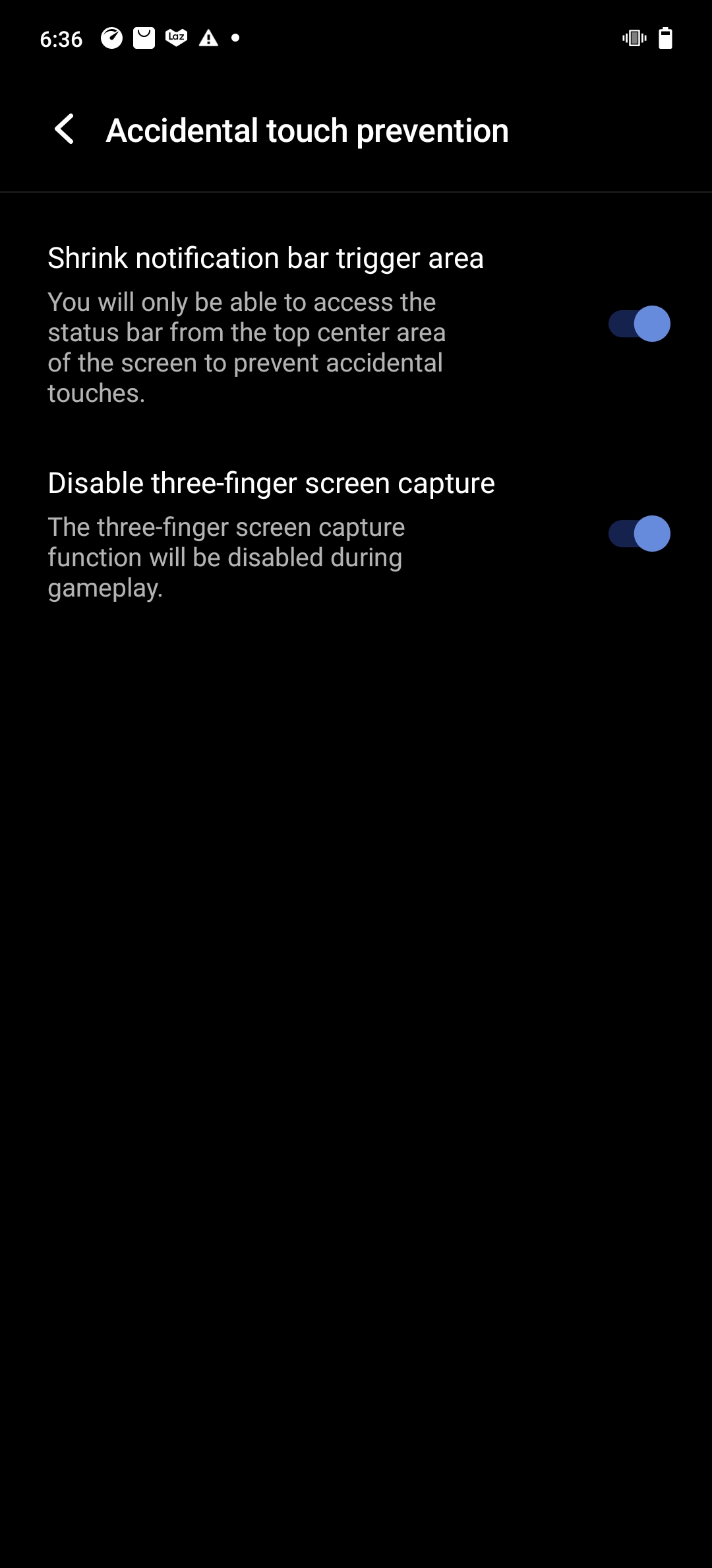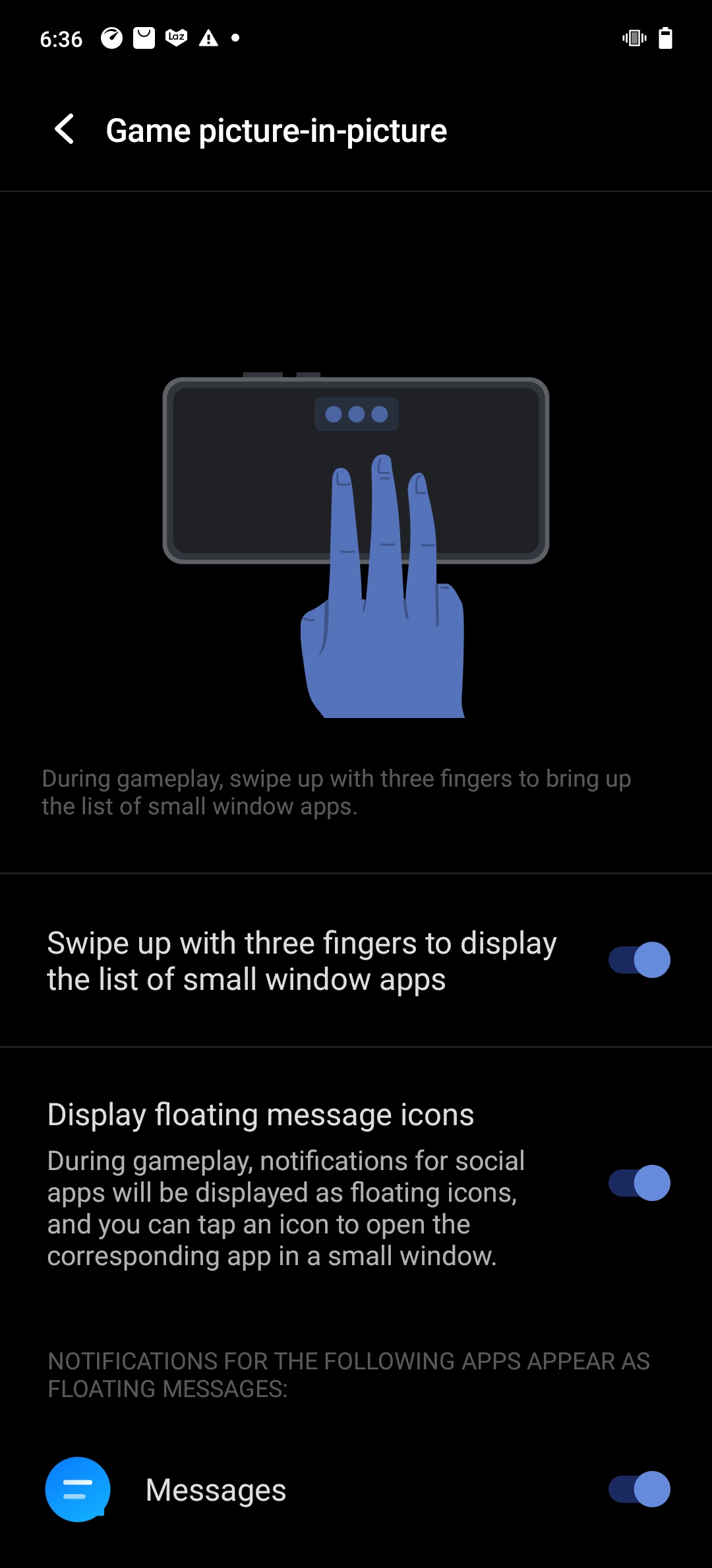 ป้องกันการแตะโดนหน้าจอโดยไม่ได้ตั้งใจ ปิดการใช้ 3 นิ้วลากบนหน้าจอ ซึ่งปกติจะใช้เพื่อจับภาพหน้าจอหรือ Capture หน้าจอGame Picture-in-Picture คือระหว่างเล่นเกม สามารถแช็ตสนทนาผ่านแอปที่รองรับได้