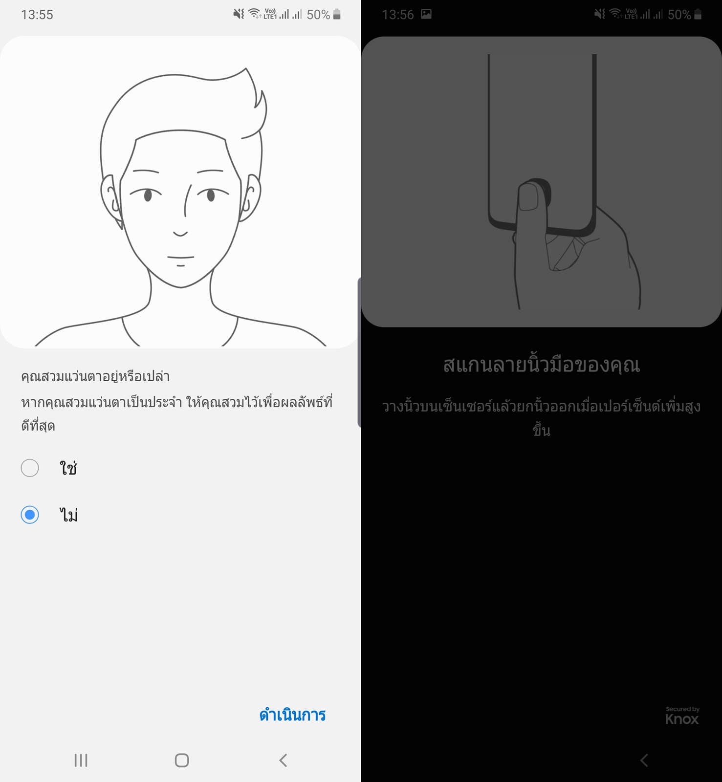 สแกนนิ้วบนหน้าจอ สแกนใบหน้า