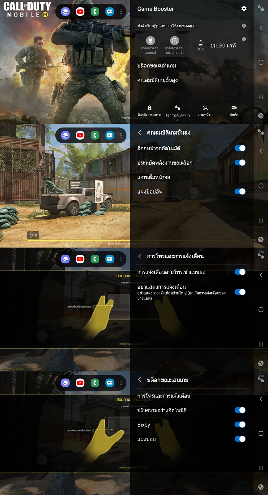Game Booster ตั้งค่าการโทรเข้า ให้เป็นแบบย่อ ปิดการแจ้งเตือน ปิดการทำงานที่ส่งผลต่อประสิทธิภาพในการเล่นเกม เพื่อประสิทธิภาพในการเล่นเกมดีที่สุด