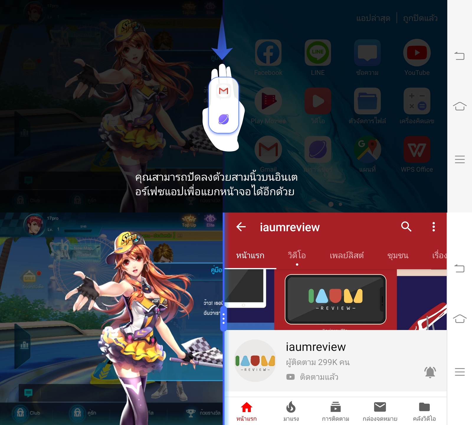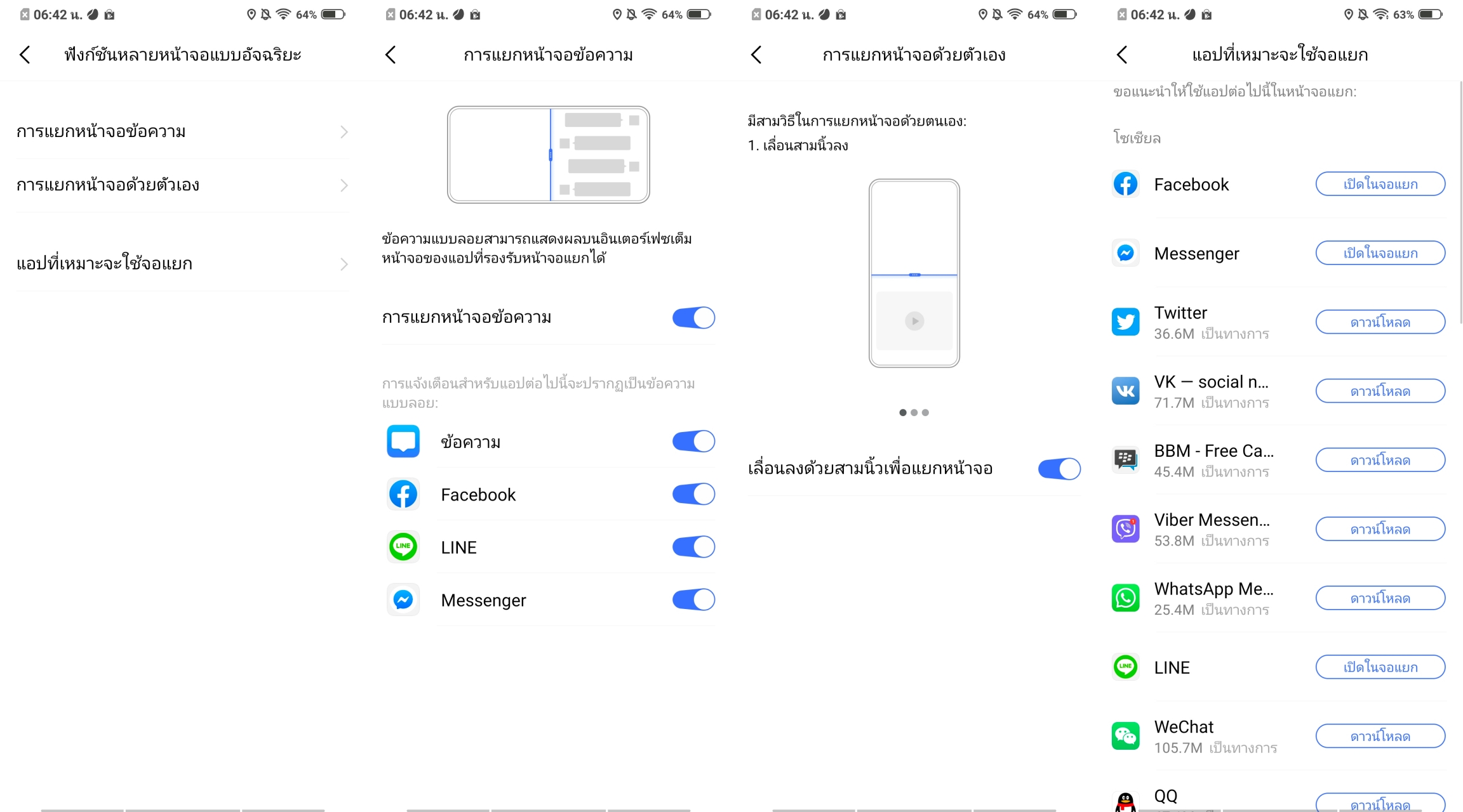 สามารถแยกหน้าจอข้อความ เช่น SMS, Facebook, LINE, Messenger หรือแยกหน้าจอแบ่งใช้ 2 แอปพร้อมกันในหน้าจอเดียวกัน