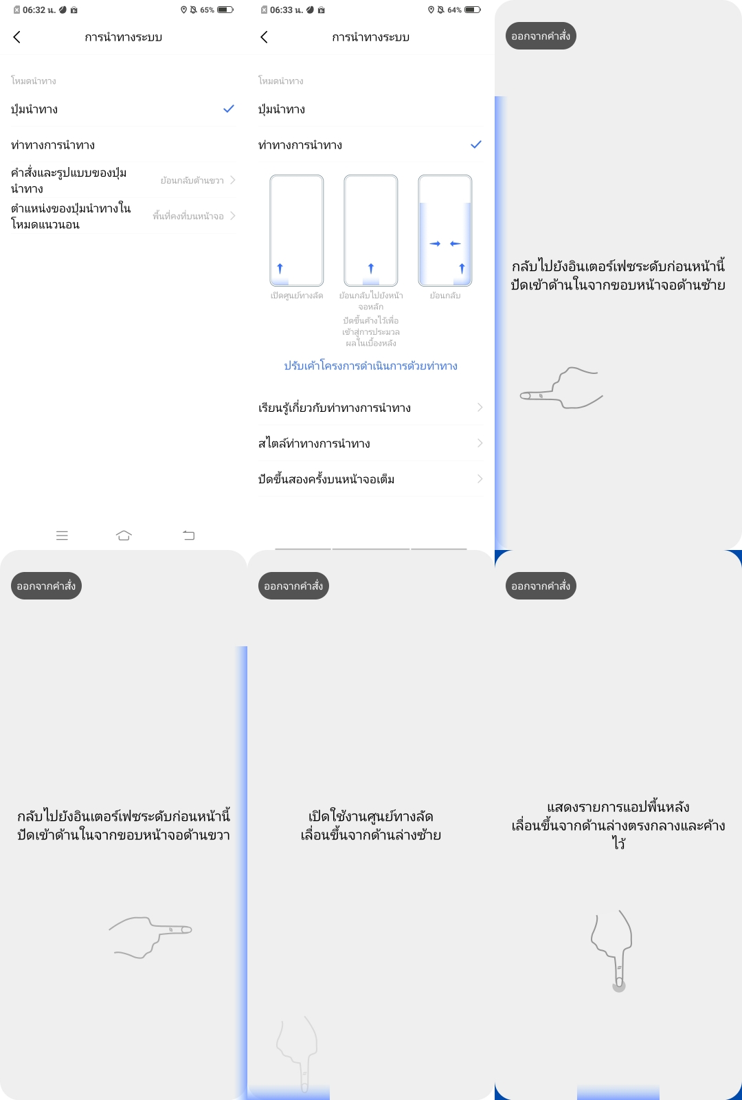 สามารถเลือกได้ ว่าจะใช้ปุ่มนำทาง หรือใช้นิ้วตวัดหน้าจอ ด้านซ้าย ด้านขวา ด้านล่าง ของหน้าจอ