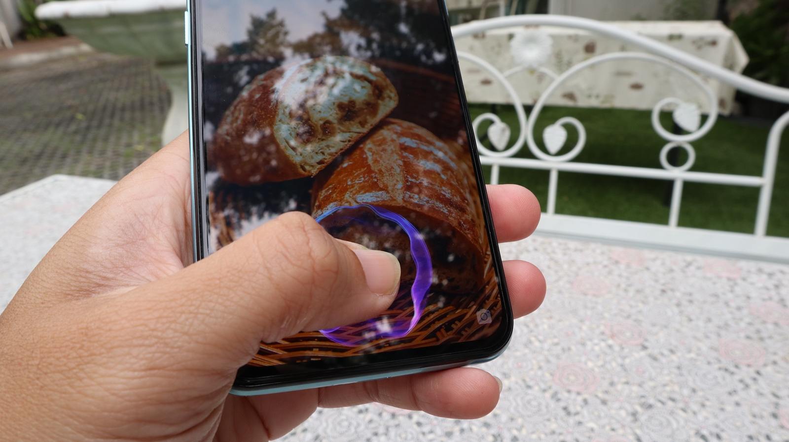 สแกนนิ้วบนหน้าจอ และสามารถกำหนดได้ว่า ให้เปลี่ยนเป็นสแกนใบหน้าได้หากสแกนนิ้วไม่ติดเกิน 3 ครั้ง เช่น ตอนที่มือเรามัน เลอะ เปื้อน ไม่สะดวกในการใช้นิ้วสแกนเพื่อปลดล็อกหน้าจอ